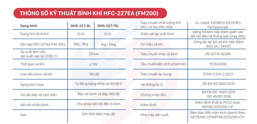 Hệ thống SMS-227 được thiết kế chuyên dụng cho các phòng kỹ thuật điện, hầm kỹ thuật điện, các khu vực nhỏ không phù hợp để lắp đặt hệ thống chữa cháy tự động sử dụng nước, bột và dung dịch bọt..., và các khu vực cần lắp đặt hệ thống chữa cháy tự động nói chung và hệ thống chữa cháy bằng khí sạch nói riêng. Hệ thống chữa cháy SMS-227 sử dụng chất chữa cháy HFC-227ea (FM-200). Chất chữa cháy được chứa trong bình dưới dạng khí hóa lỏng và nén bằng nitơ đến áp suất 25 bar. Đây là chất chữa cháy khí sạch, không màu, không mùi, an toàn cho con người, không dẫn điện và không để lại cặn sau khi phun. Chất chữa cháy HFC-227ea (FM-200) tự động phân tán sau một khoảng thời gian sau khi phun, không gây hư hỏng cho các thiết bị điện và điện tử